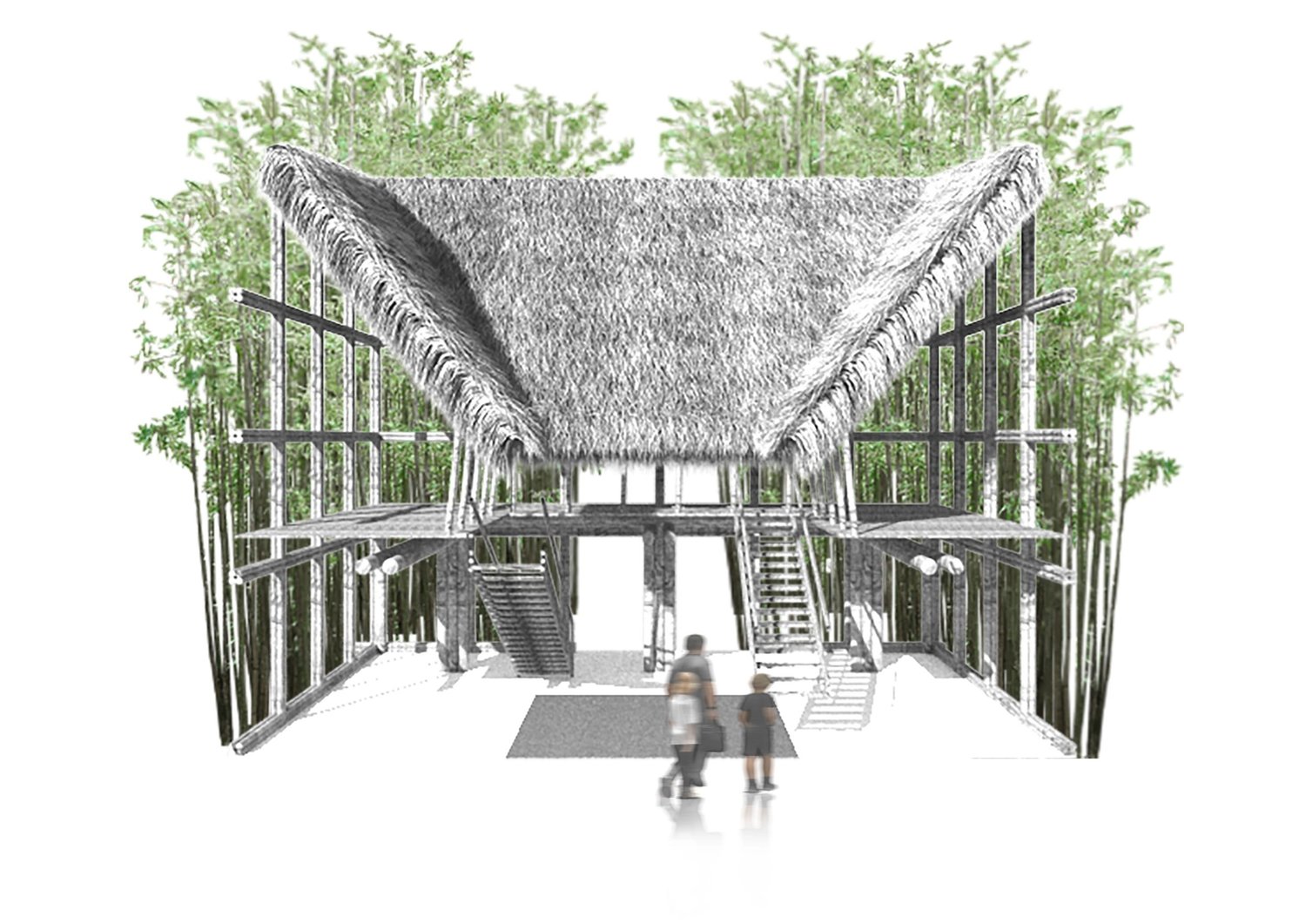 This humble design for how the museum of the future should be takes the form of the bale – the traditional house of the Ifugao peoples of the Cordillera mountain range in Northern Luzon, Philippines. In our design the bale is inverted inward and arranged around a central open atrium. Informed by Indigenous building techniques and using local materials, our design uses bamboo instead of the traditional hardwood as a framework, and living bamboo creates the ‘exterior walls’. This design reinforces age-old practices that are very sustainable: from the harvesting of raw materials to the actual act of building and use, the open-air design promises the possibility of a low to net-zero carbon future of museum design.